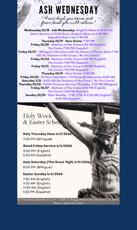 If you would like to donate flowers as a Weekend Mass Praise & Tribute, please contact the parish office at office@stfaustina.org. This is a stunning way to honor loved ones and occasions!